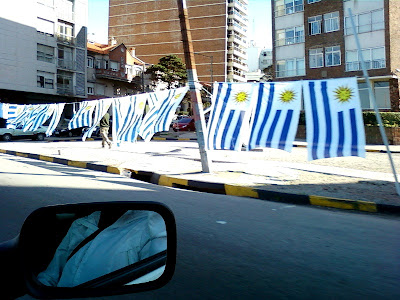 Al pasear por las calles de la ciudad, se puede vivir la euforia que siente el pueblo uruguayo por nuestra selección. Las banderas están omnipresentes en cada esquina, en los autos, en las motos y bicicletas, en los taxis y ómnibus y en las casas.